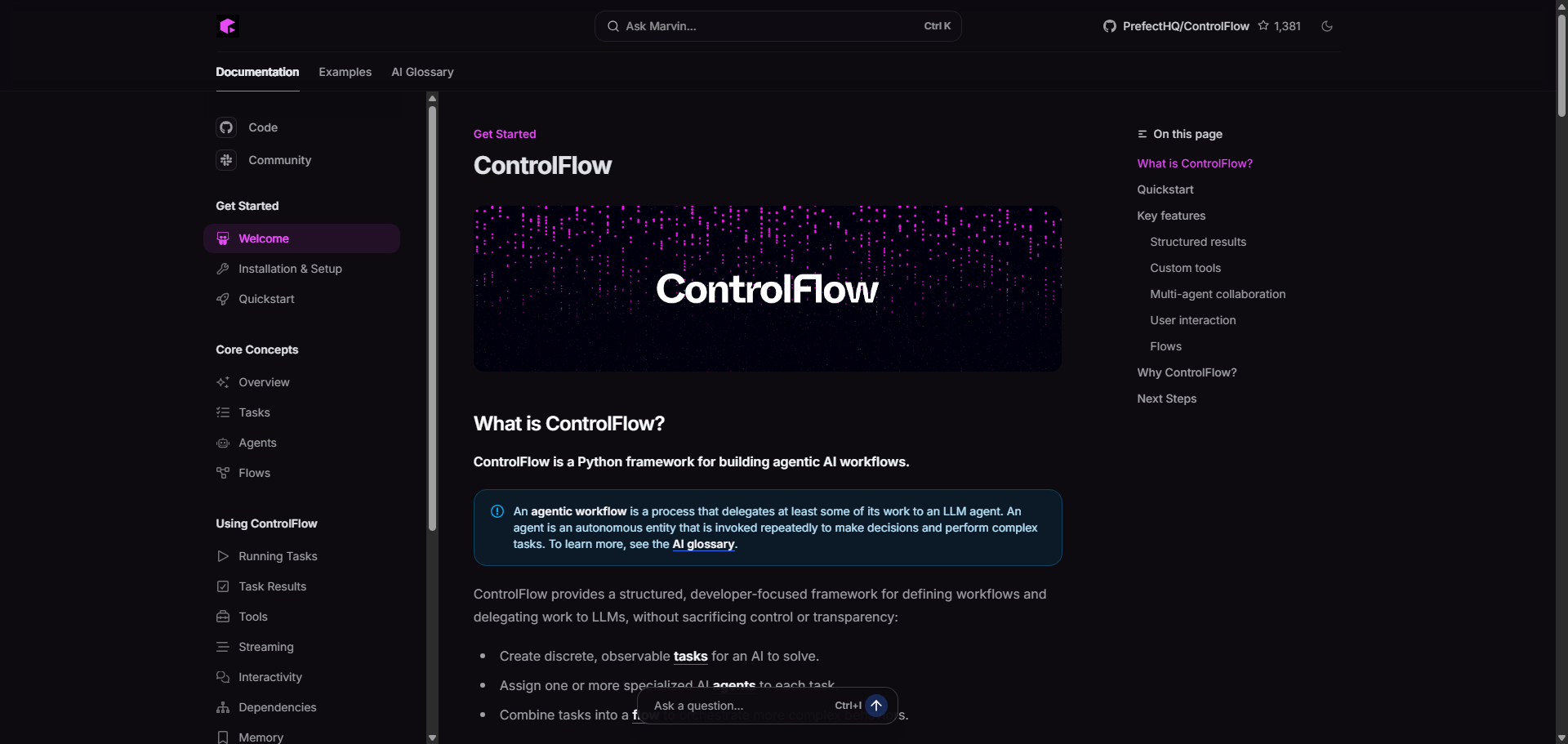 ControlFlow shines for developers who want full transparency and structure in their agentic workflows.